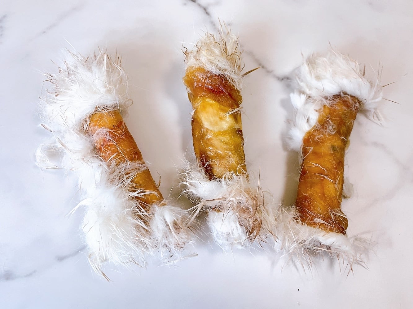 ※ うさぎの耳や毛皮には、多くの健康上の利点があり栄養価が高いですが、犬の食事に占める割合はごくわずかです。一度にたくさん与えると便秘などに繋がります。